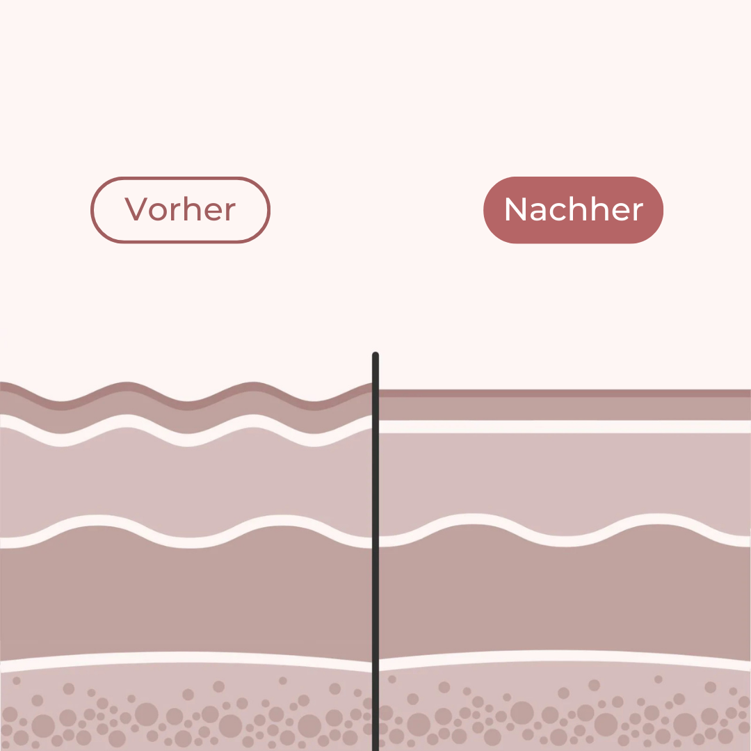 Etwa 90 % unserer Kundinnen berichten von sichtbaren Ergebnissen bereits nach der ersten Nacht – bei anderen kann es ein paar Anwendungen dauern, bis sich ein Effekt zeigt.